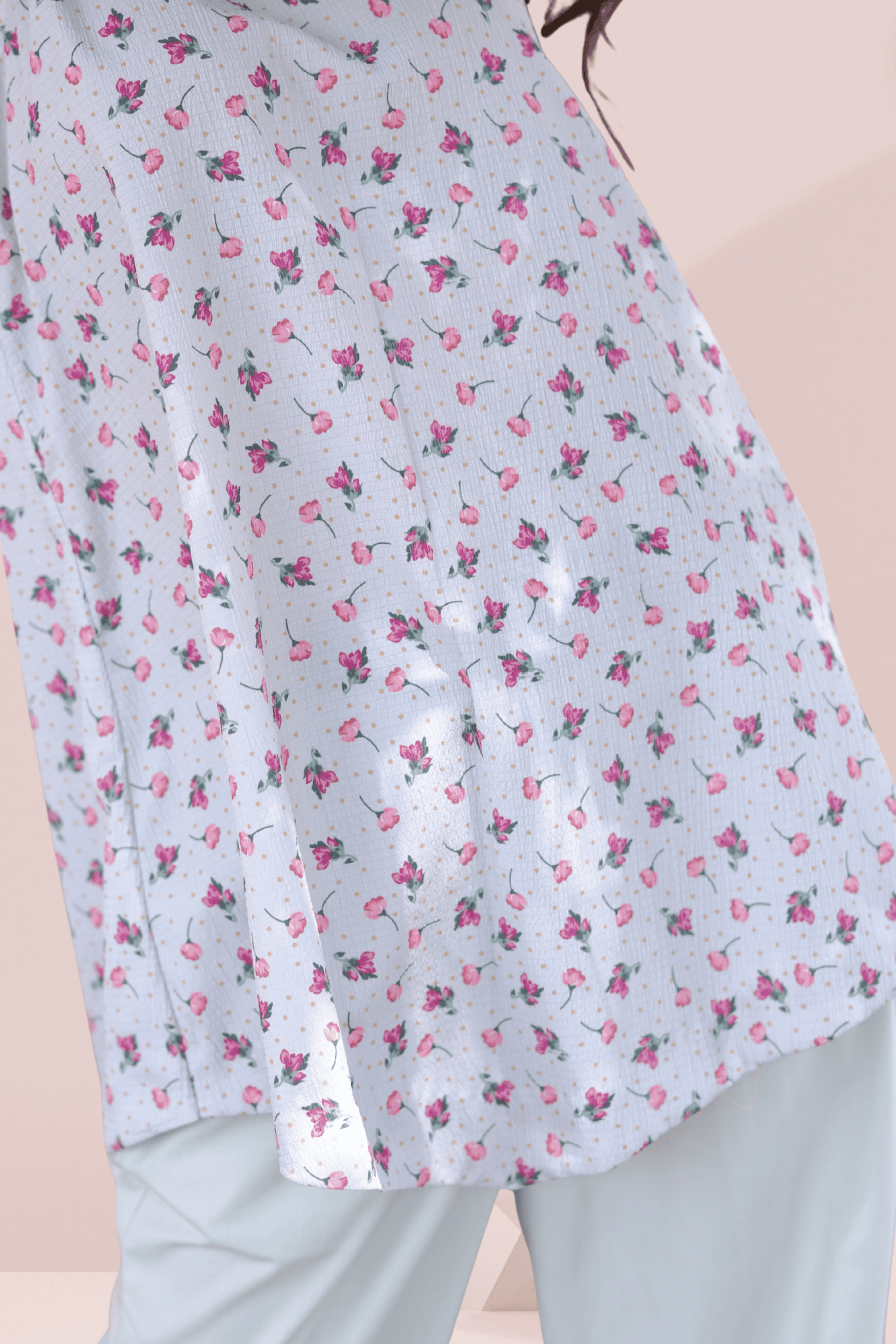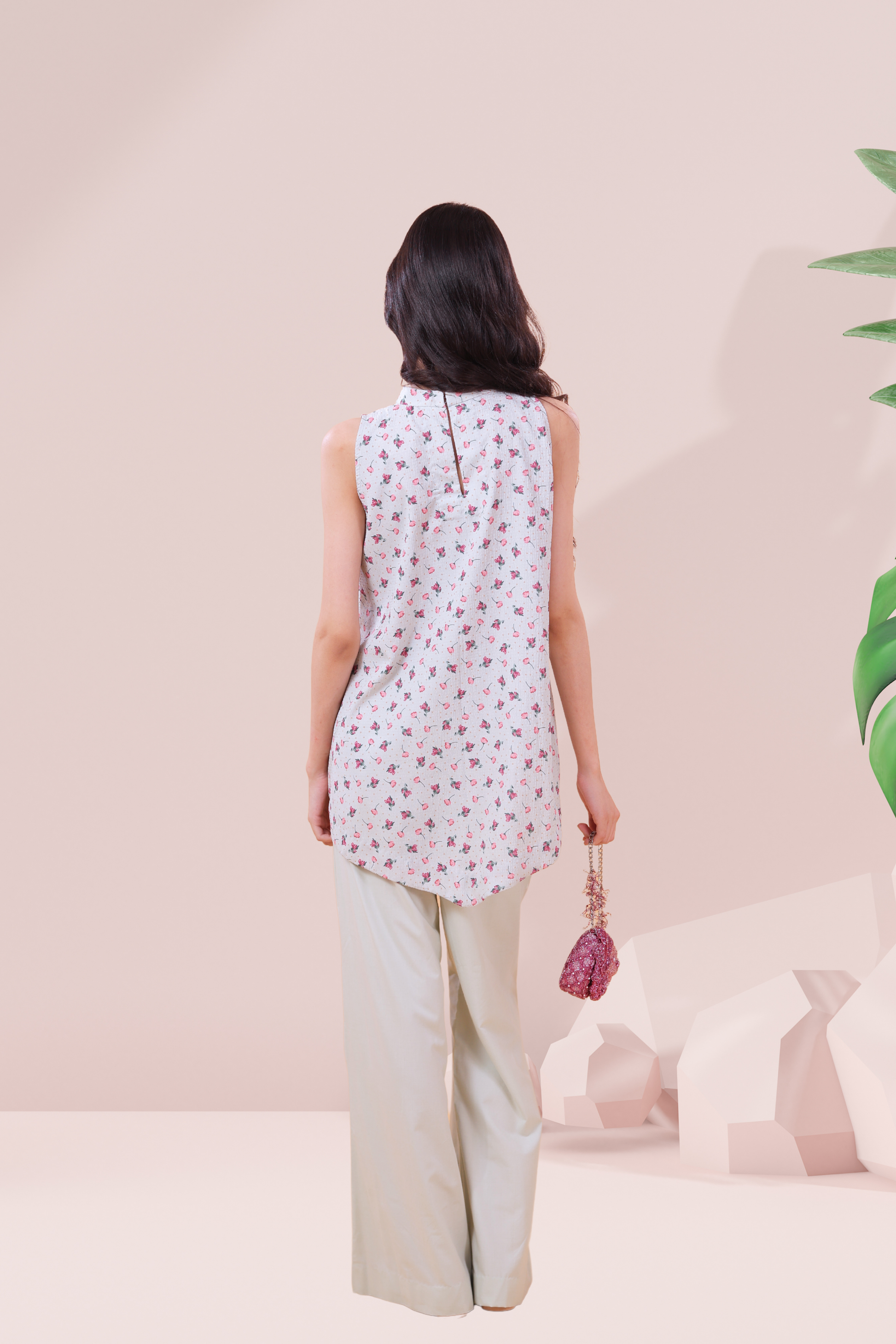Step into a summer daydream with our Petal Co-ord Set. Designed in a pastel green base scattered with tiny blush blooms, this sleeveless top brings effortless grace with its flowy asymmetric hem and soft pleats at the neckline. Paired with wide-leg ivory trousers, it’s a look that blends ease, romance, and timeless style.
