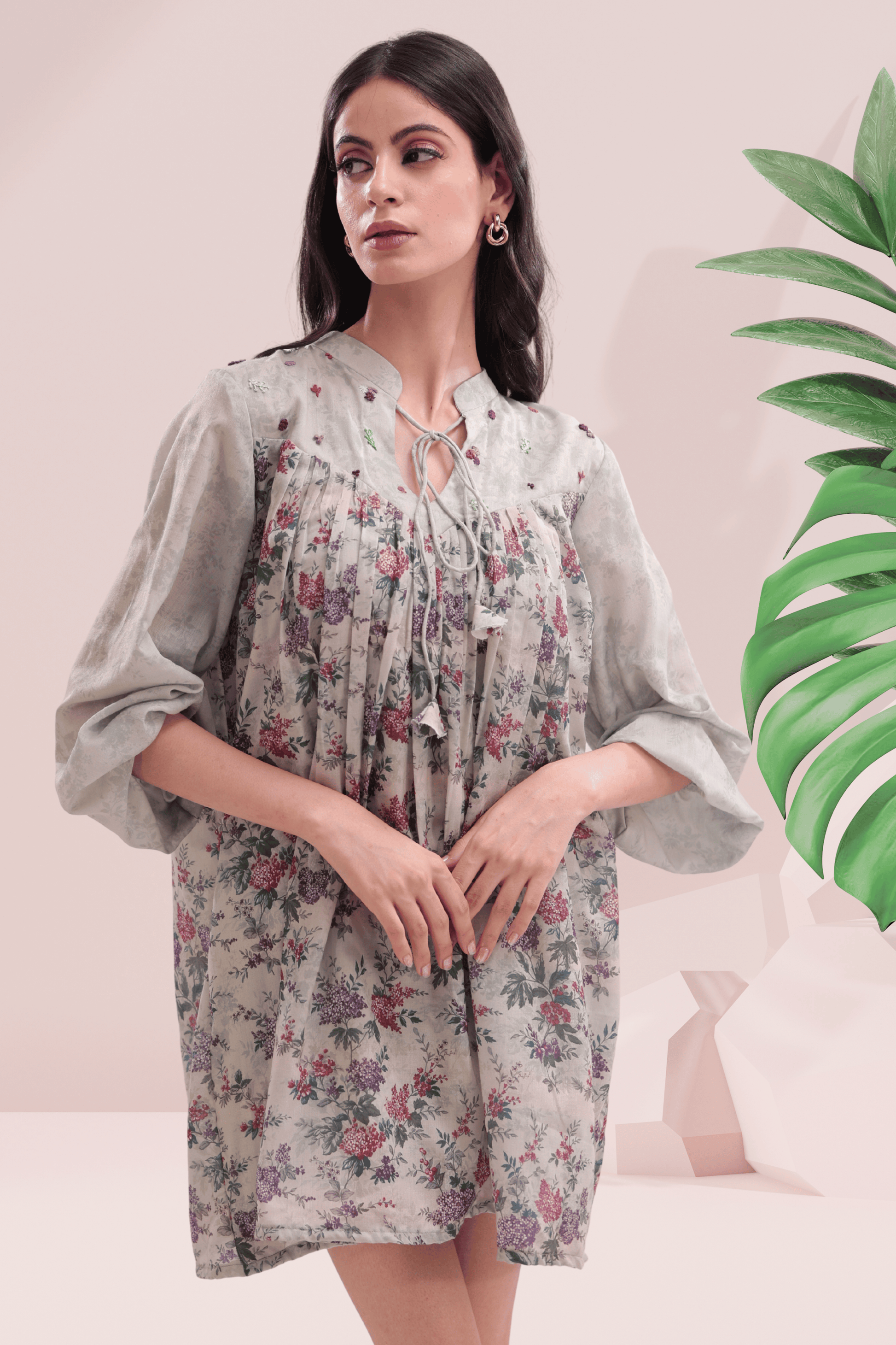 Soft, airy, and effortlessly romantic — the Wisteria Dress is your dream summer mini in bloom. Crafted from floral printed cambric fabric and adorned with hand-embroidered florals, this easy-fit silhouette captures the innocence of a garden morning. With gathered detailing, a drawstring neckline, and voluminous sleeves, it’s designed for the days you want to feel both free and feminine.